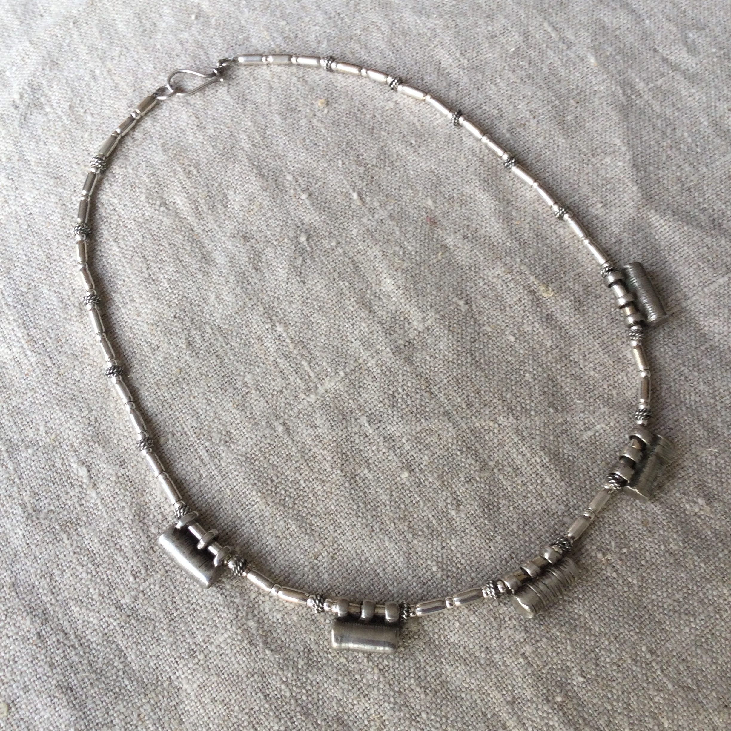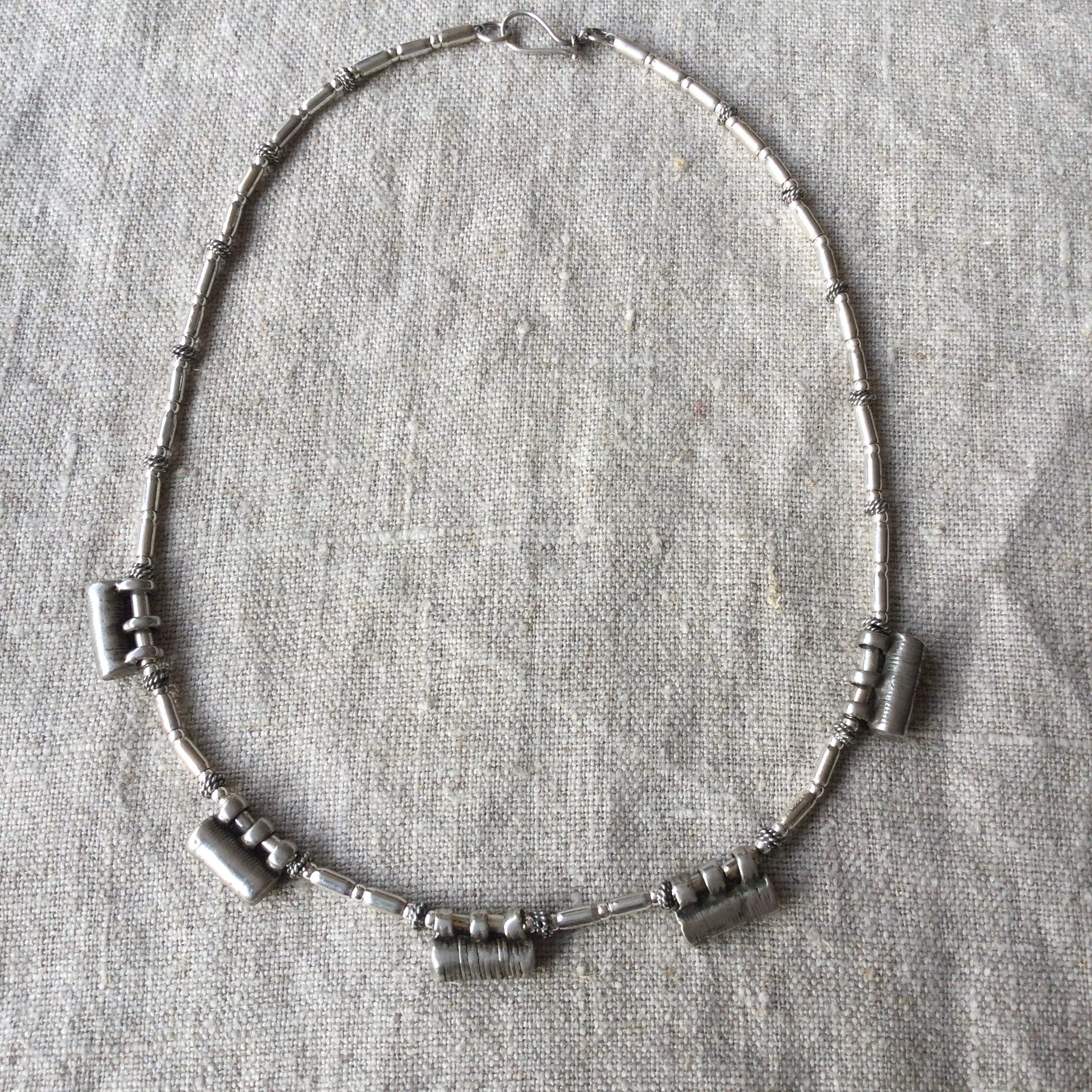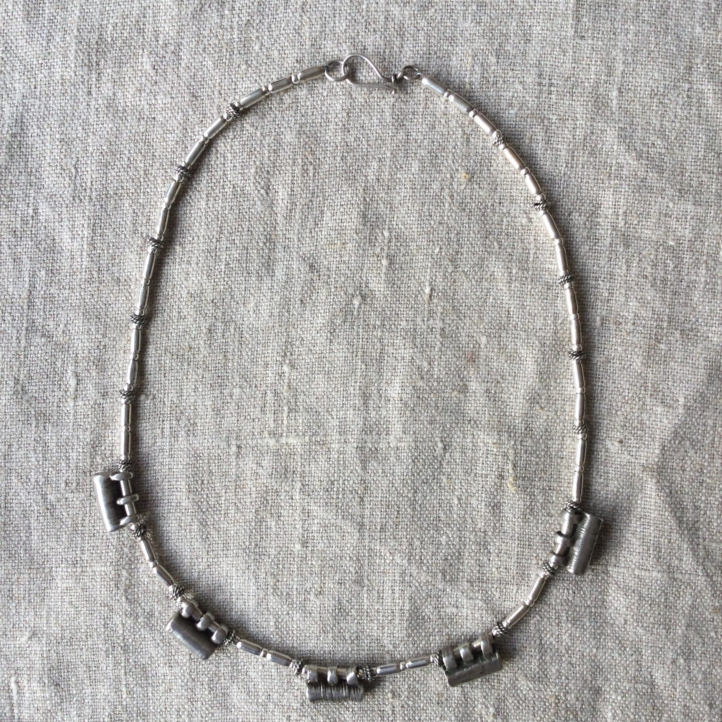Handmade silver beads with old silver Ethiopian talisman worn for protection