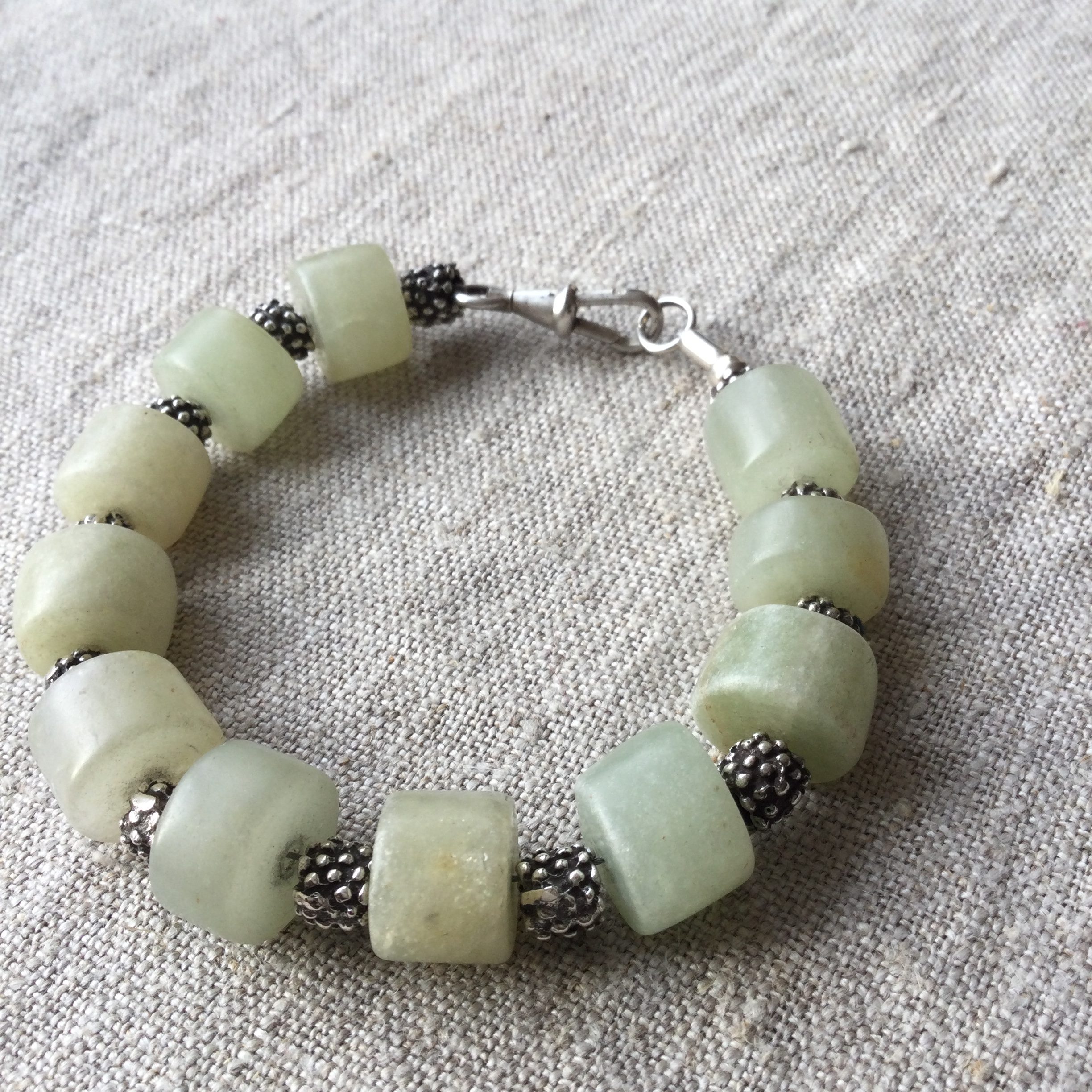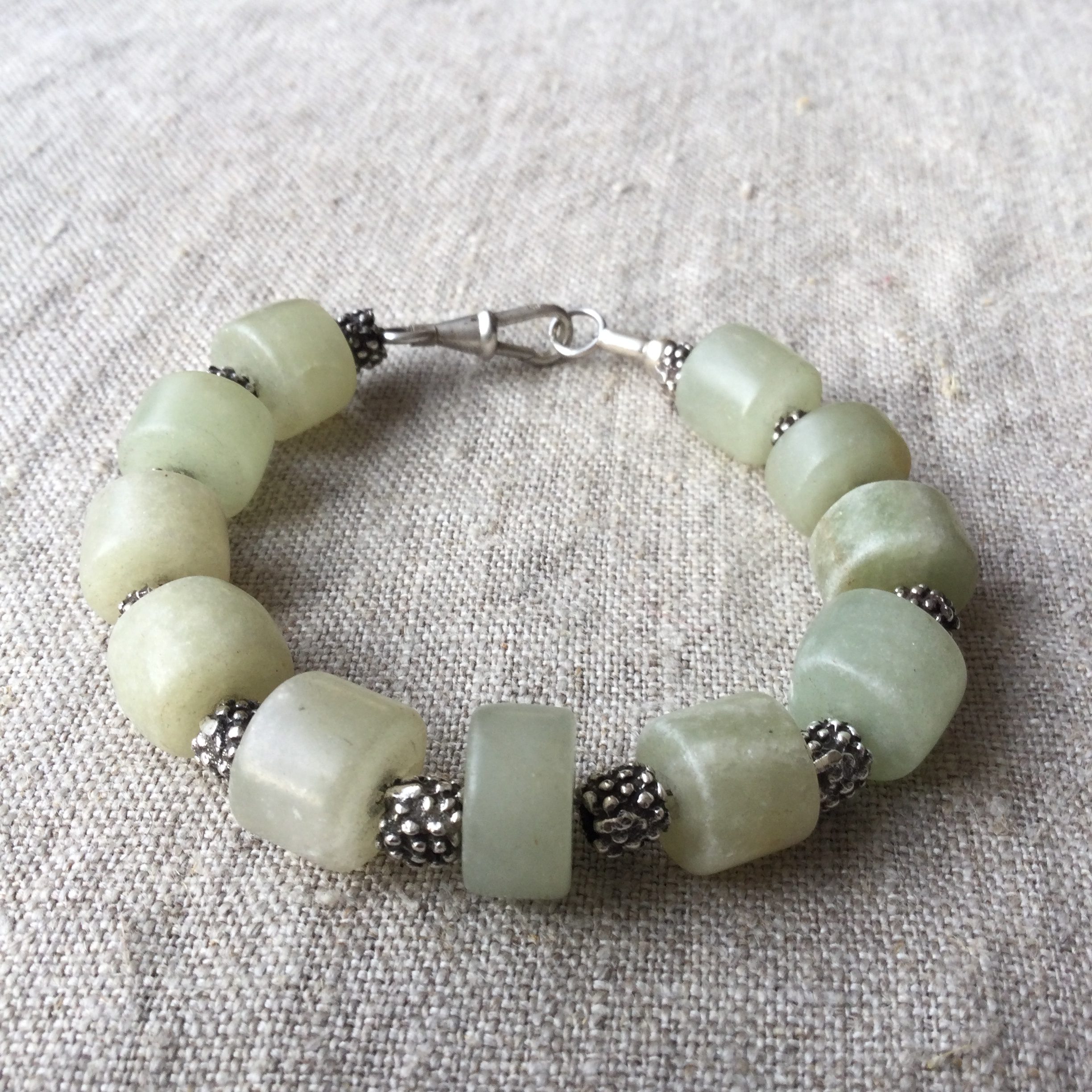 Chunky jade stones with handmade silver beads