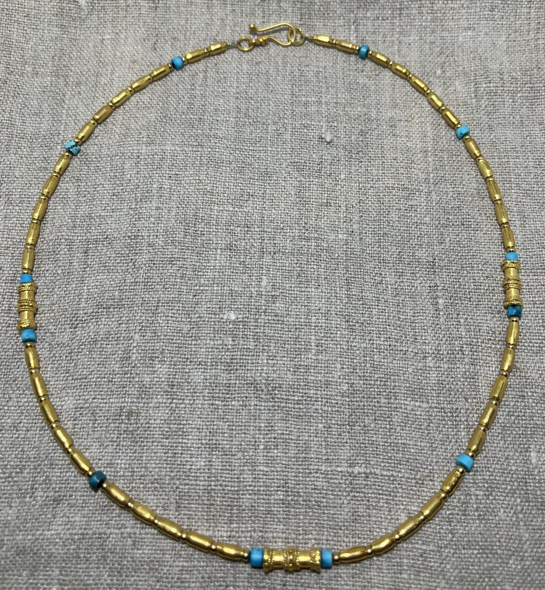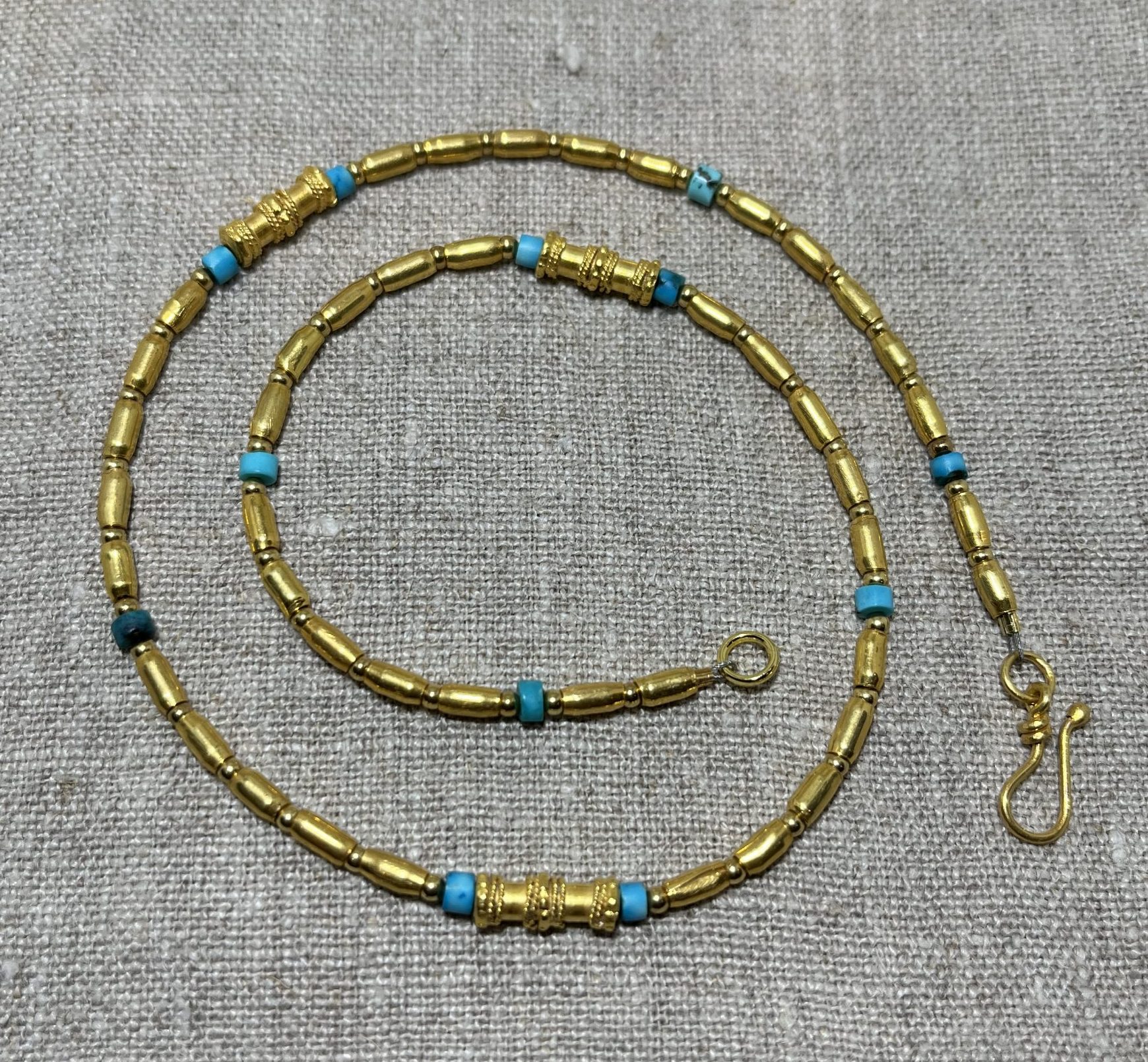 Beautiful tiny turquoise beads alongside handmade gold plated silver beads