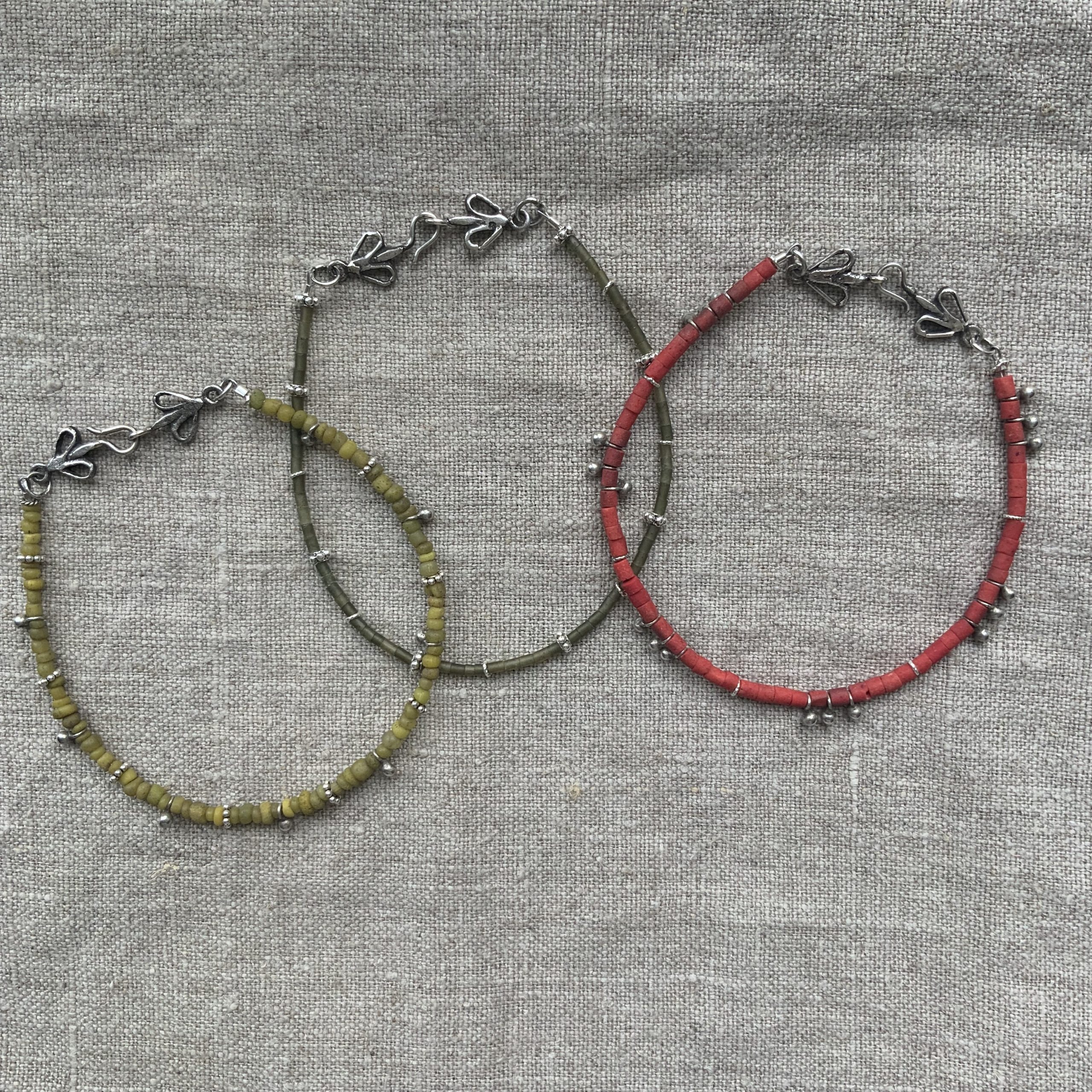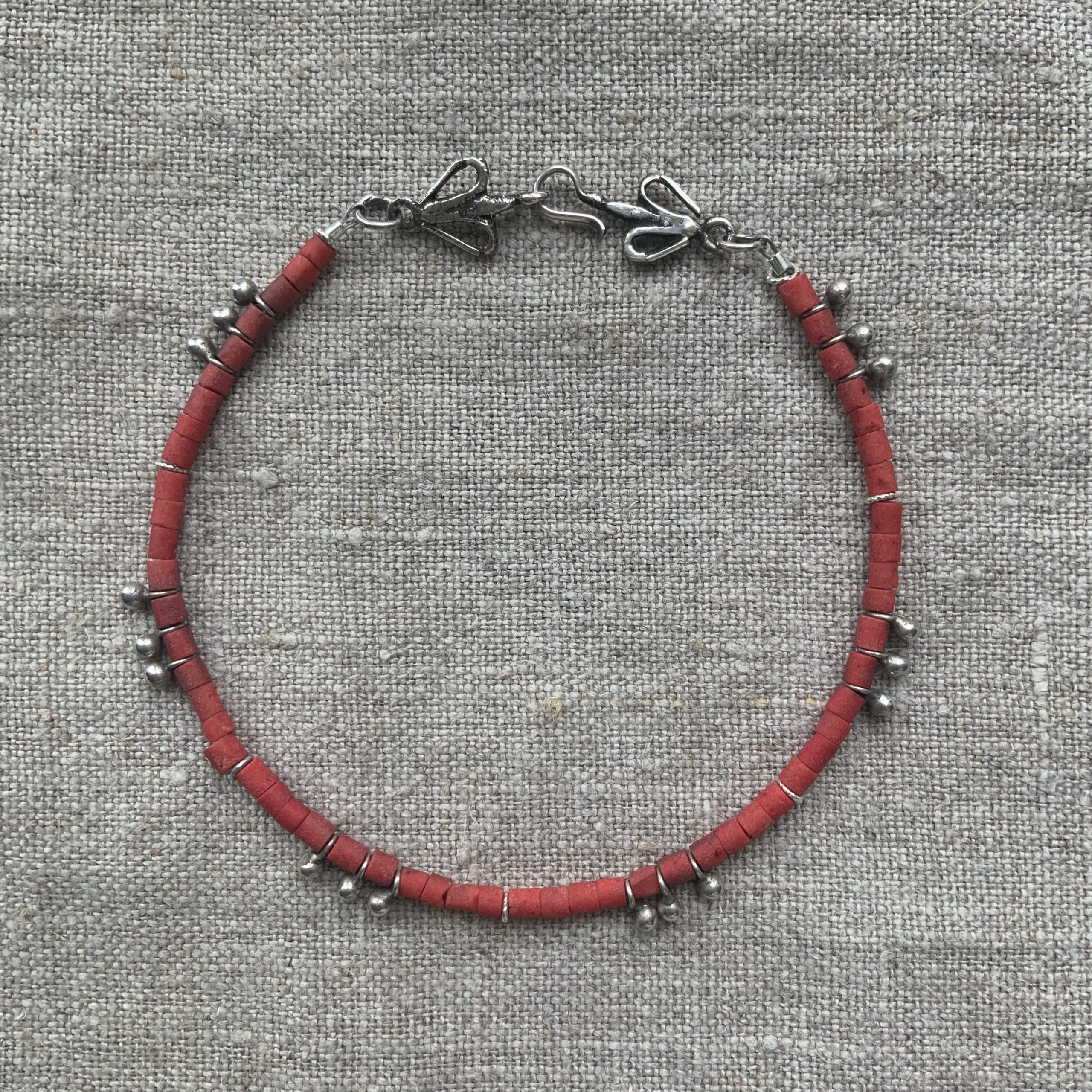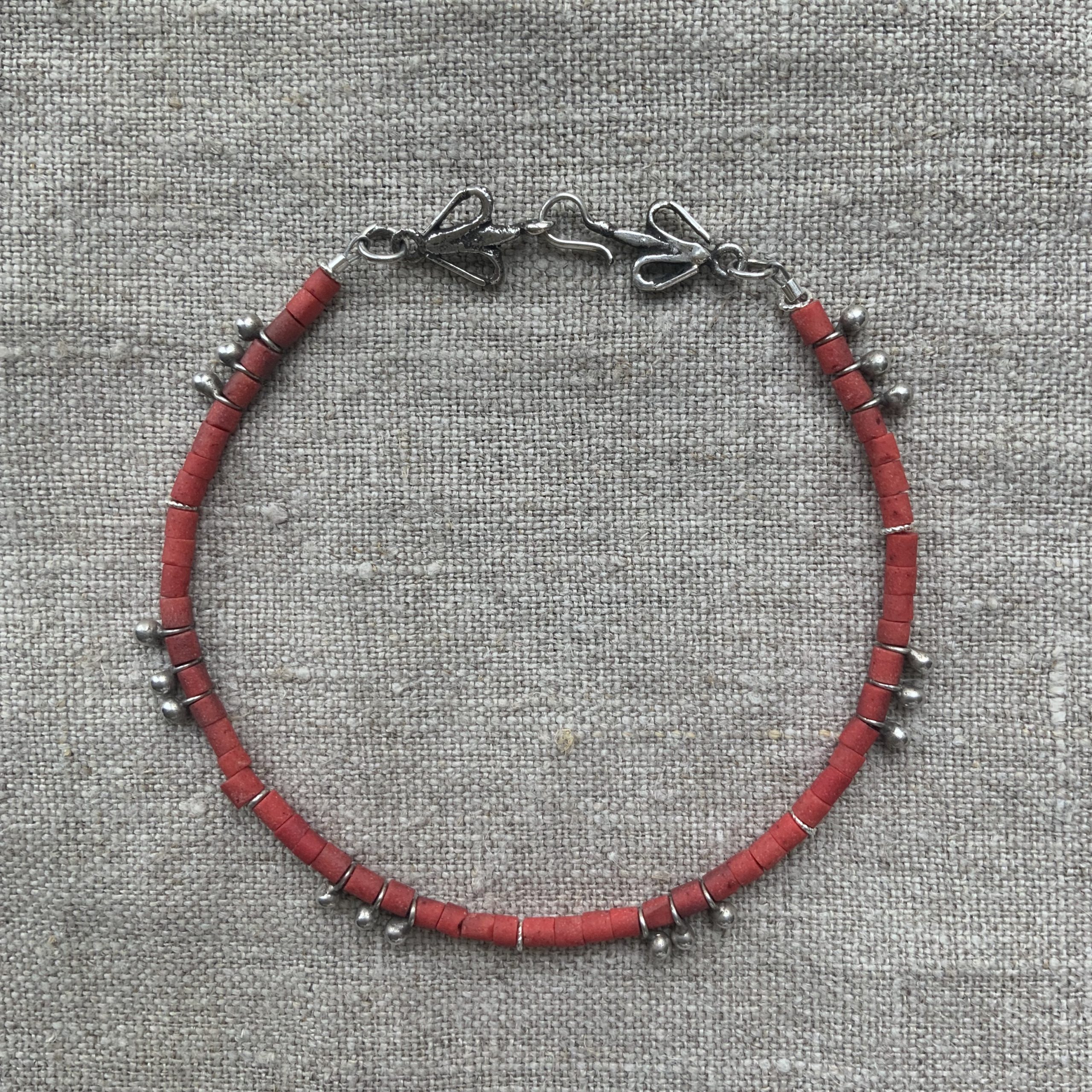 Ceramic coral beads with handmade silver beads, tiny silver dangles and lotus clasp
