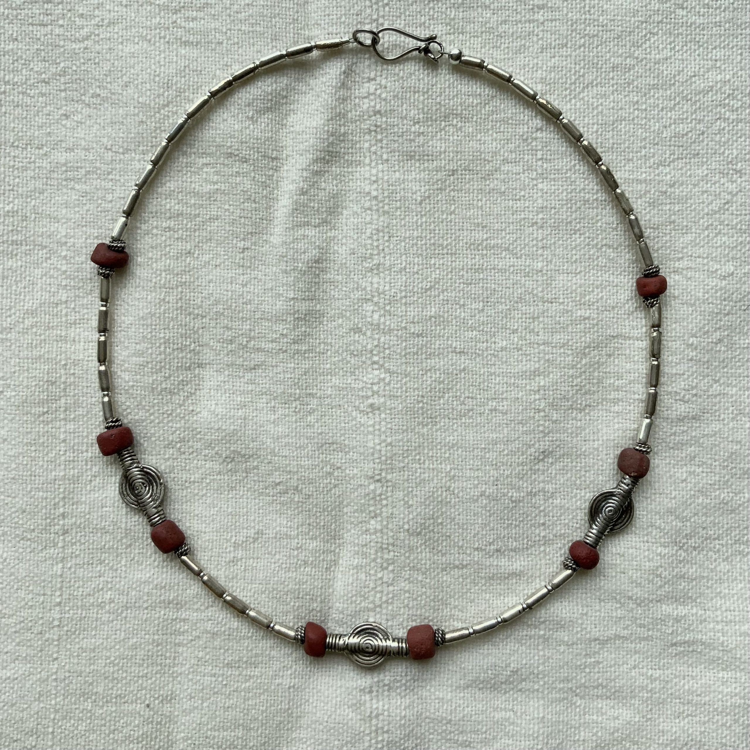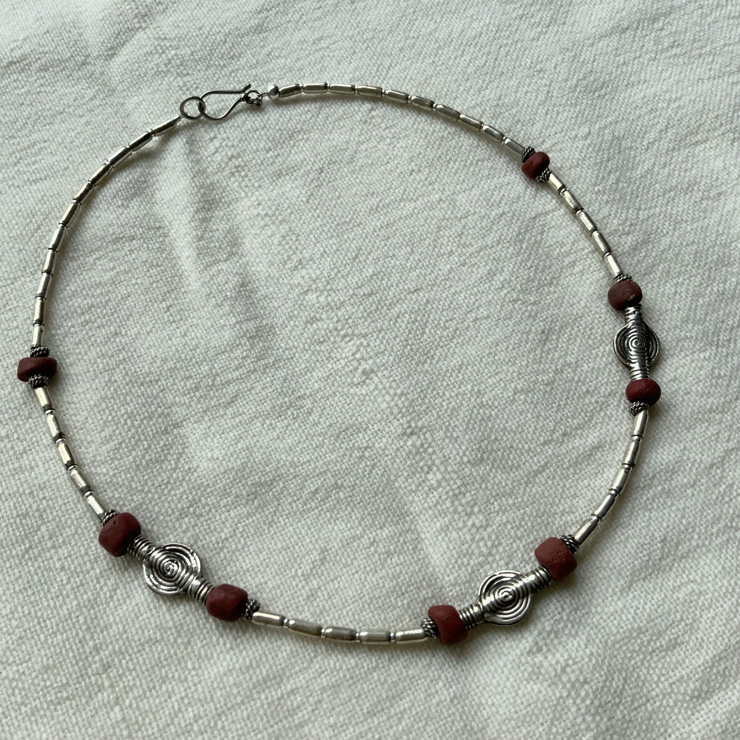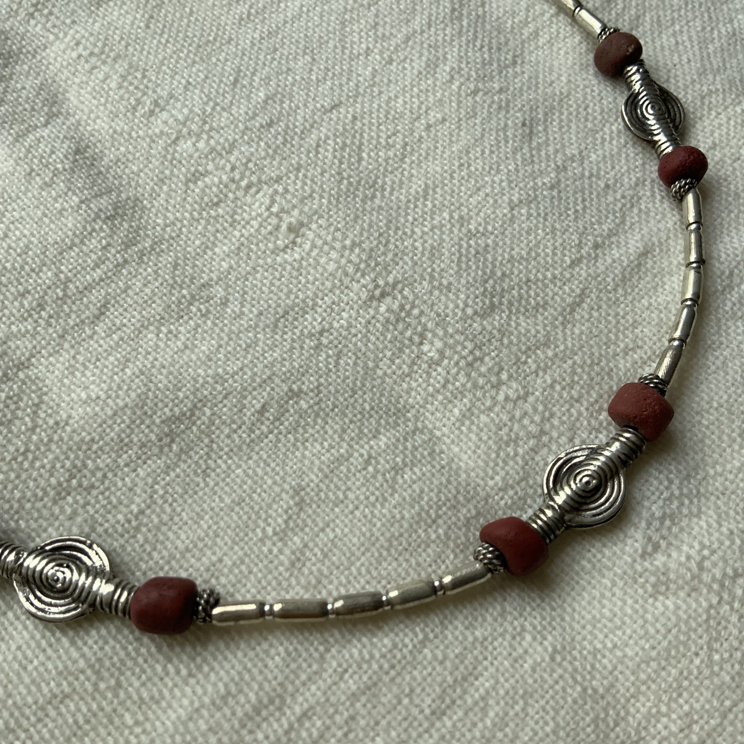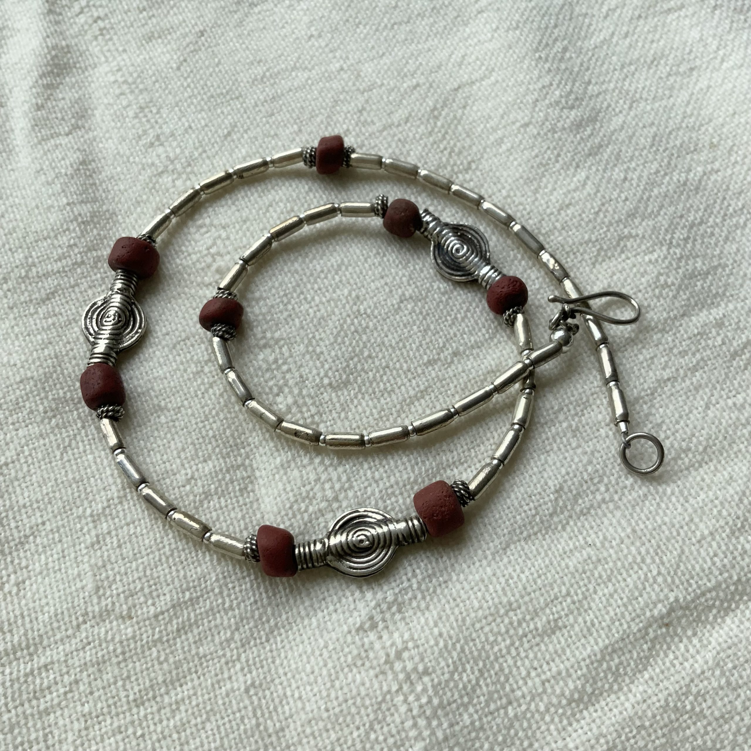 17th century Zanzibari tradewind beads with handmade silver beads