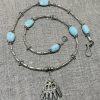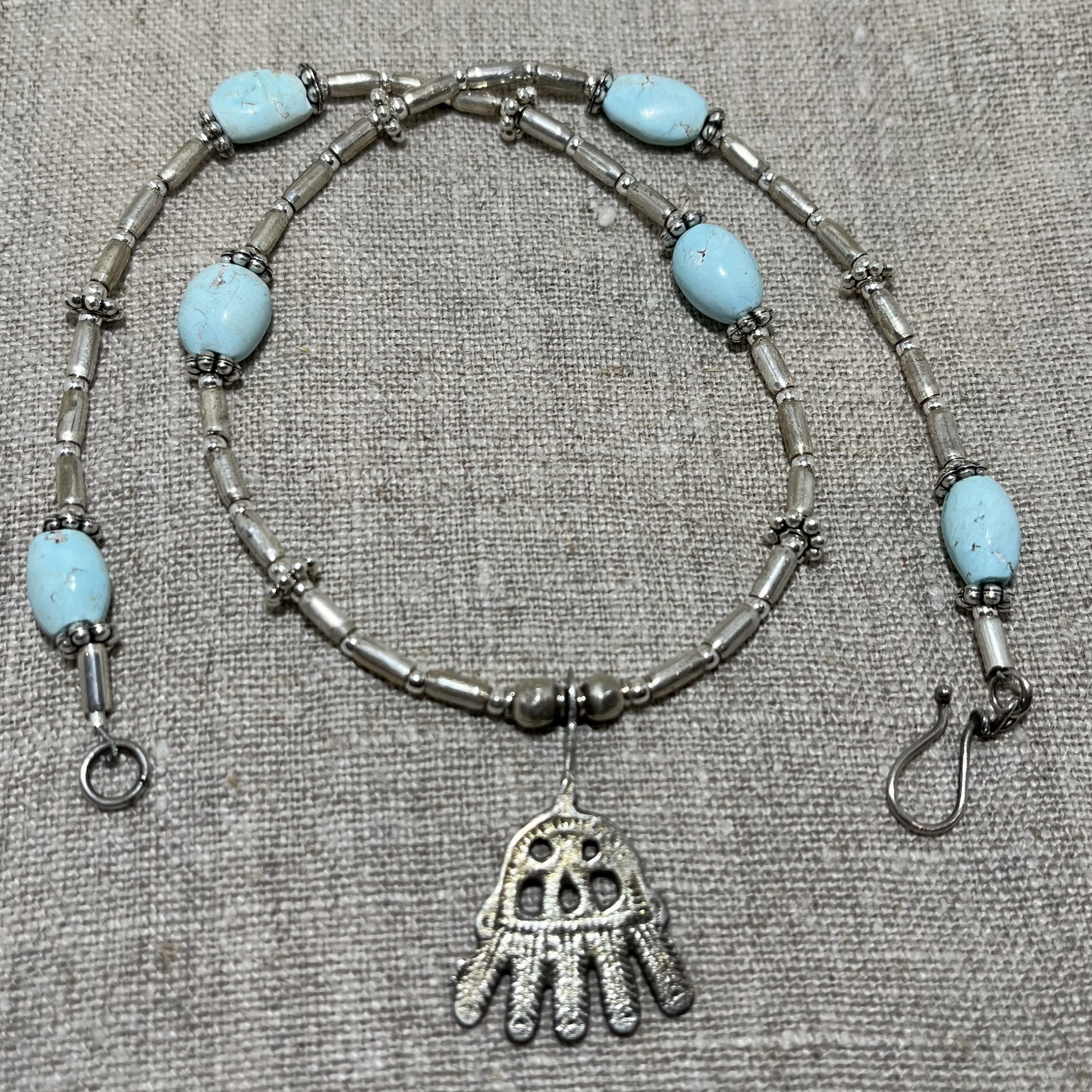 Beautiful rare pale Egyptian turqoise with old hand of Fatima pendant and handmade silver beads