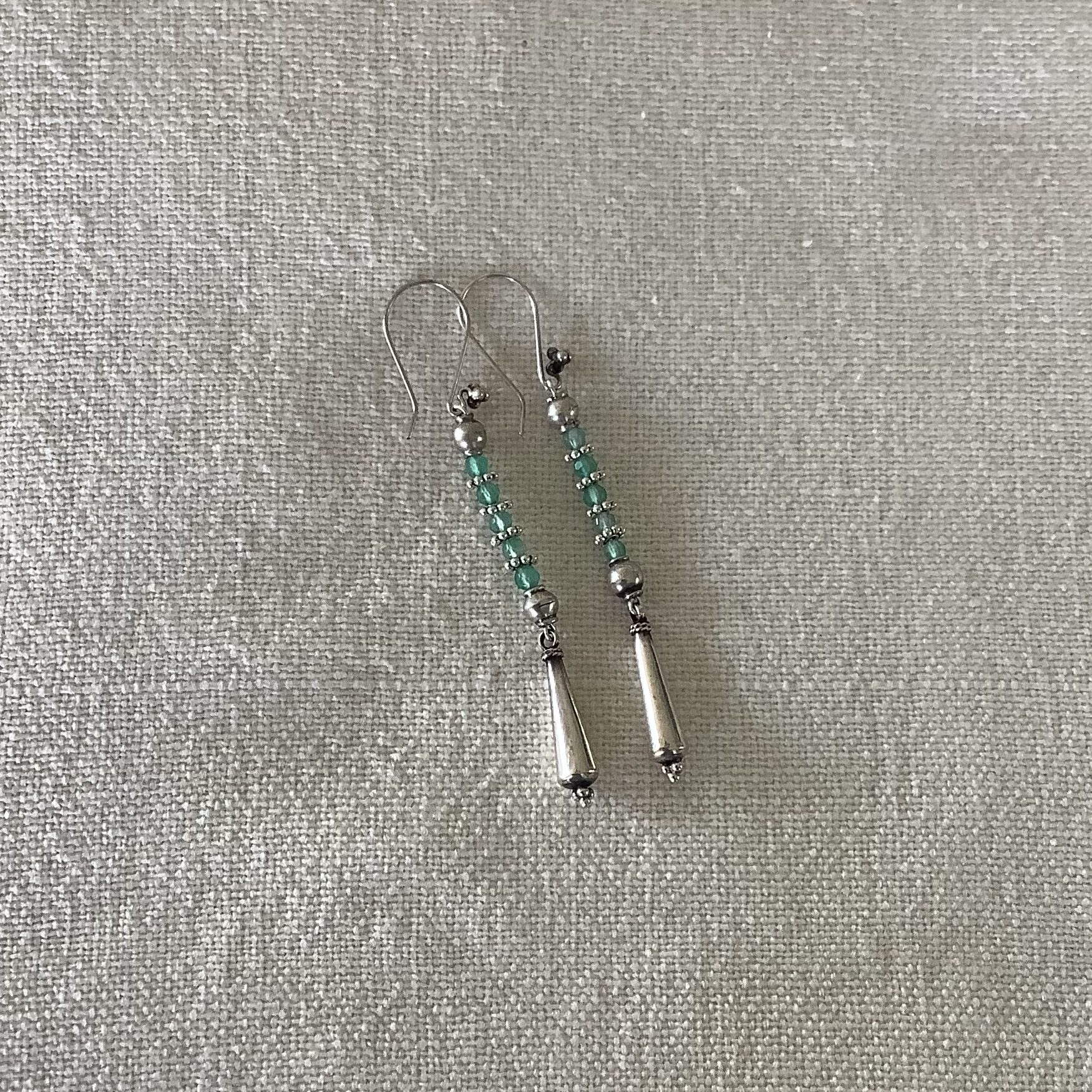 Tiny sparkly green emeralds, handmade silver beads and silver dangles