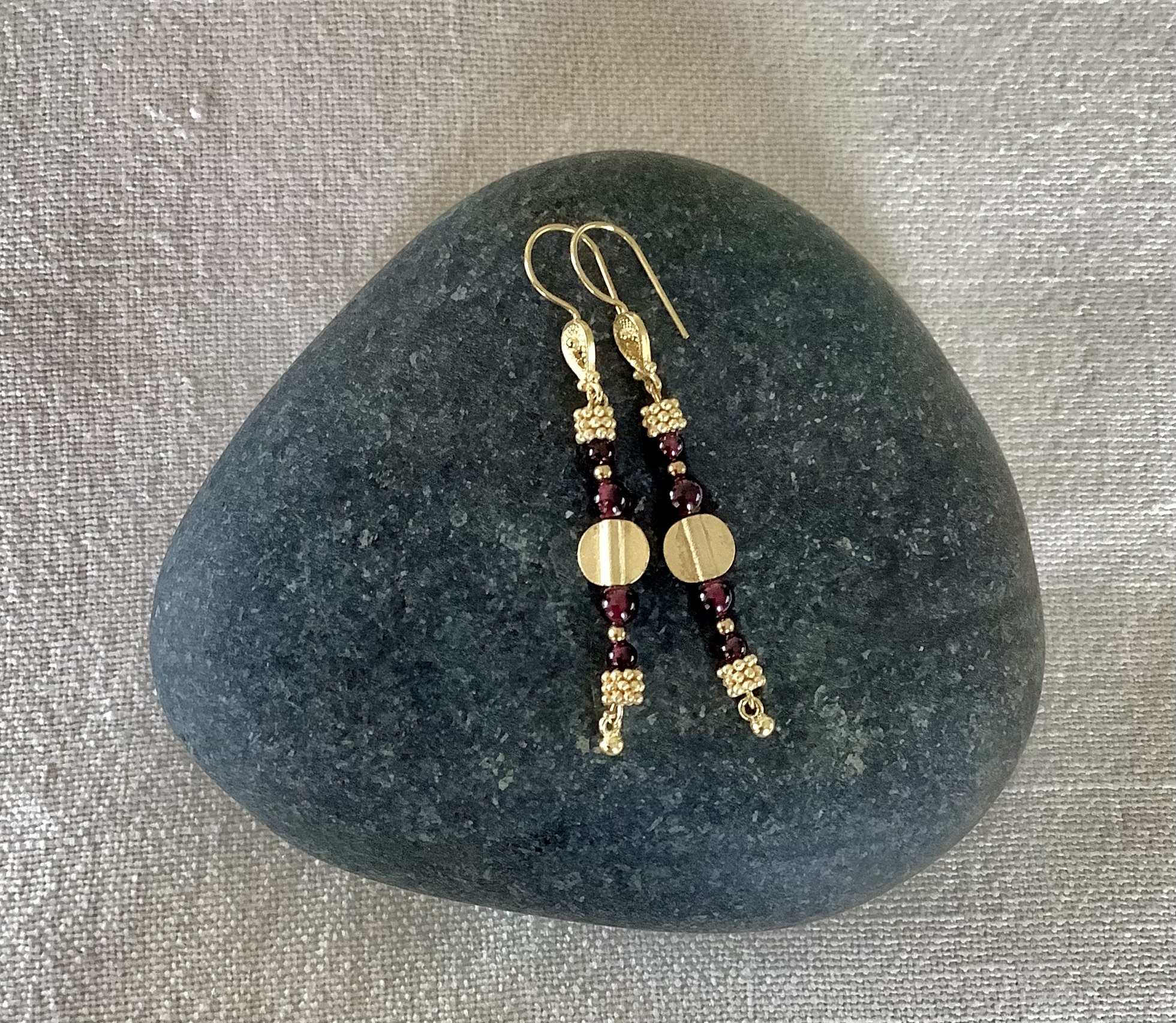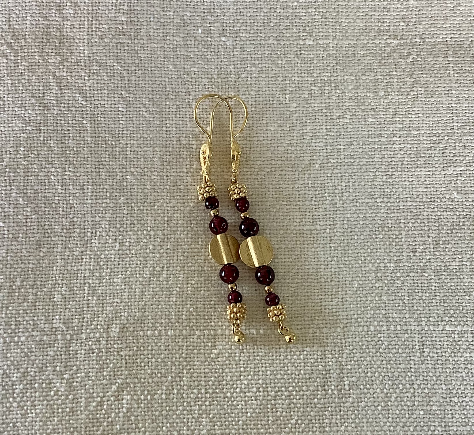Sparkly garnet beads with handmade gold plated silver beads on gold plated lotus hooks