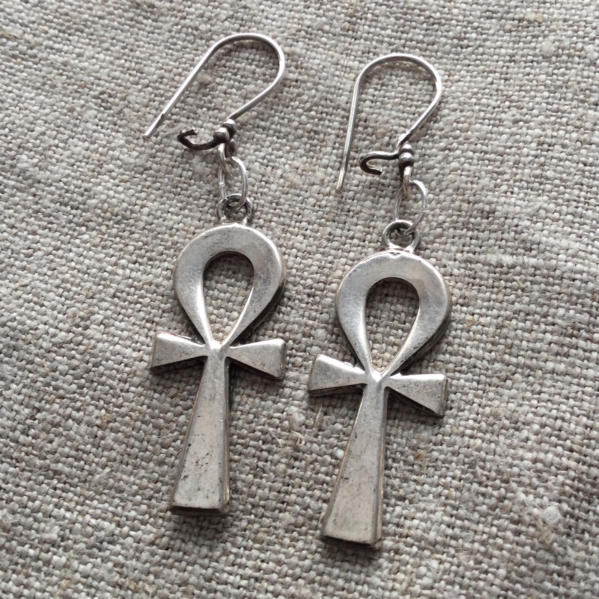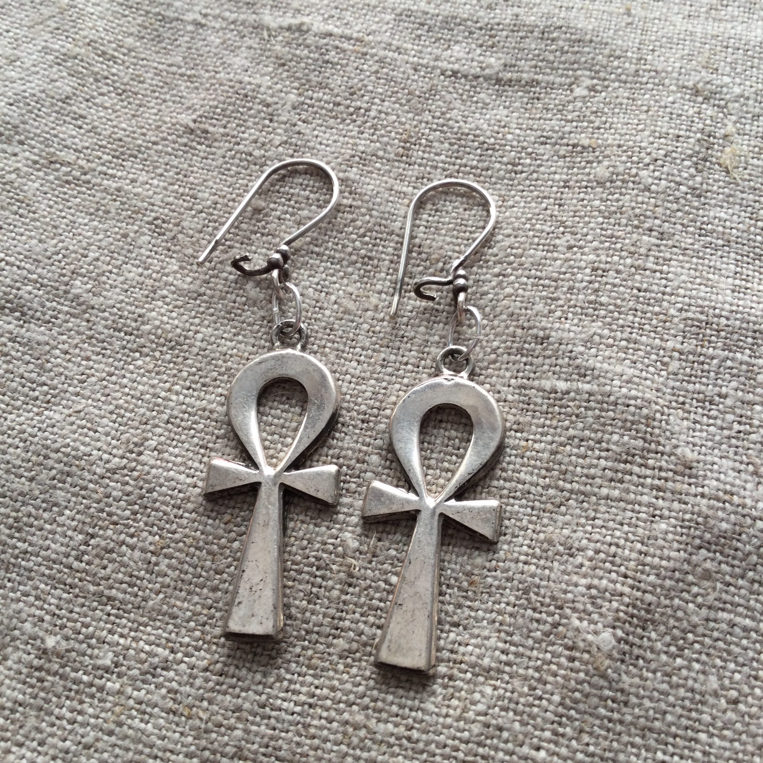 Handmade silver ankhs on silver hooks