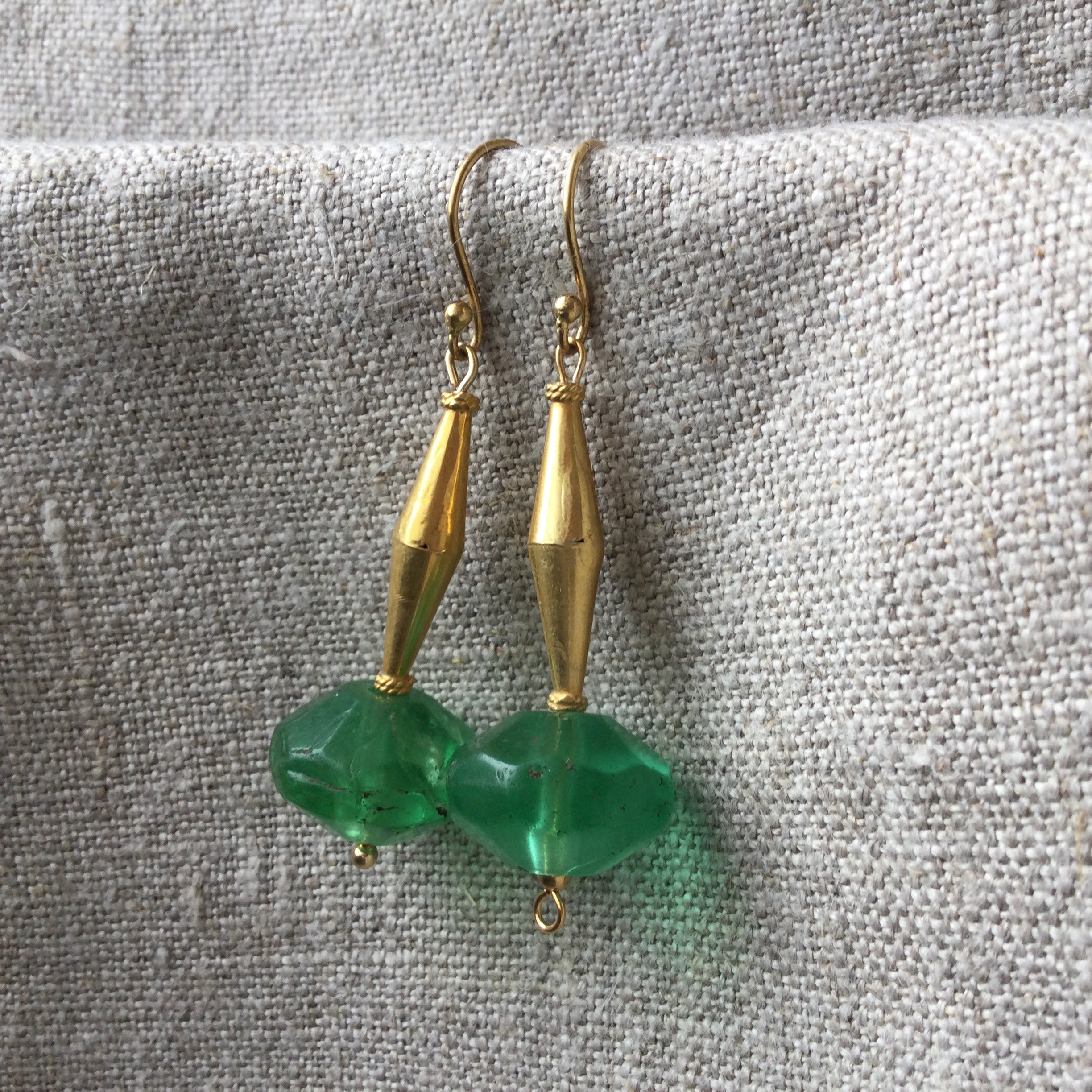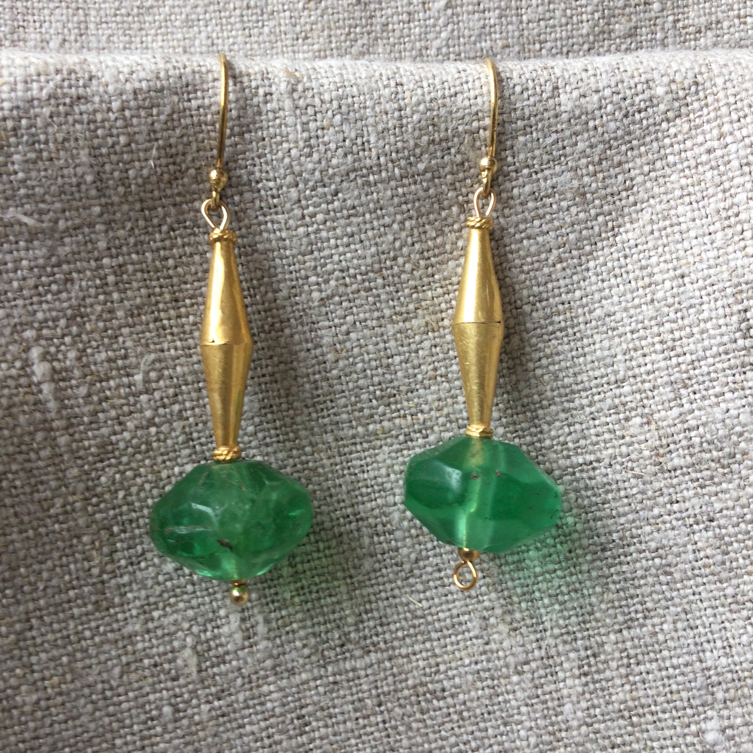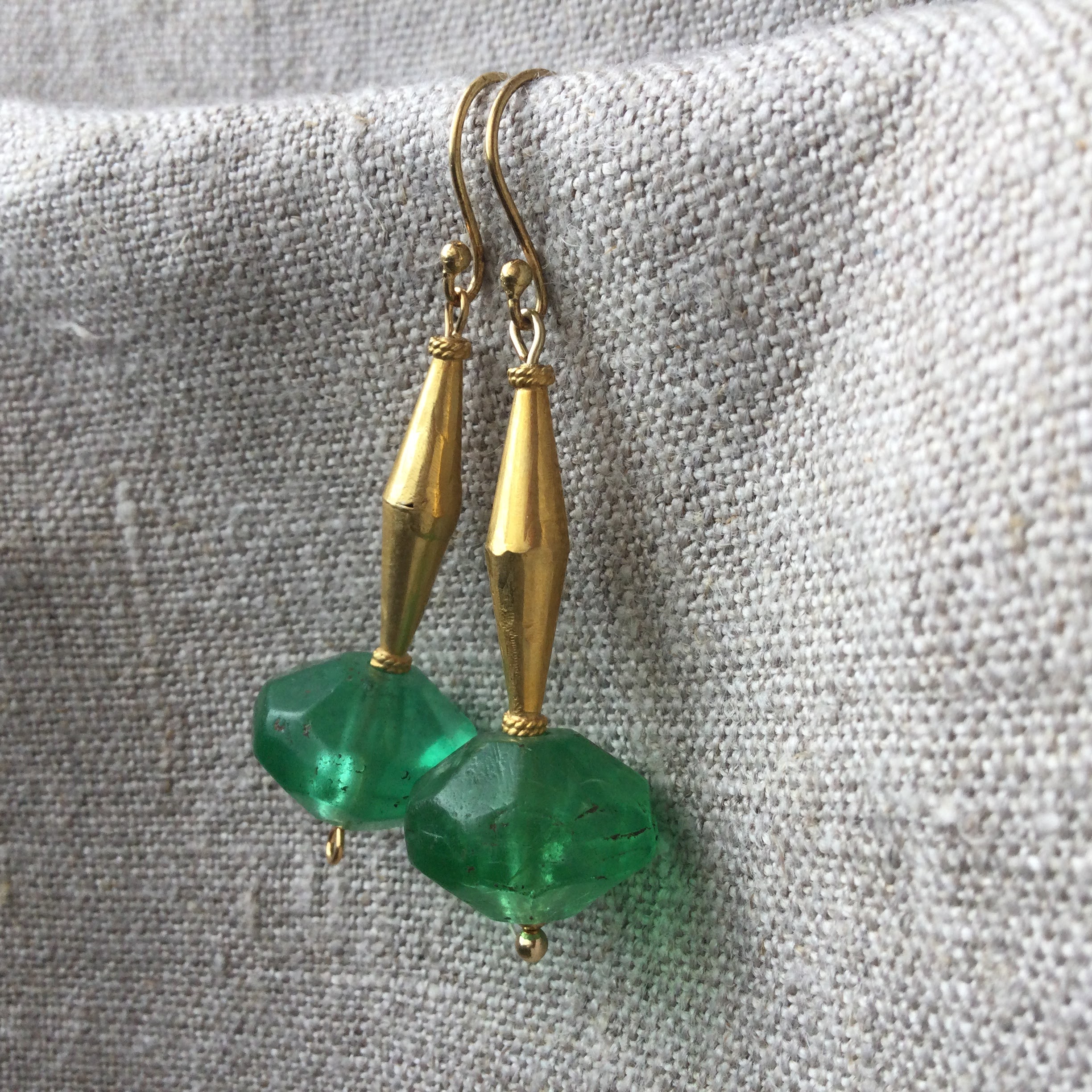 1940’s vintage vaseline beads with gold plated handmade silver beads