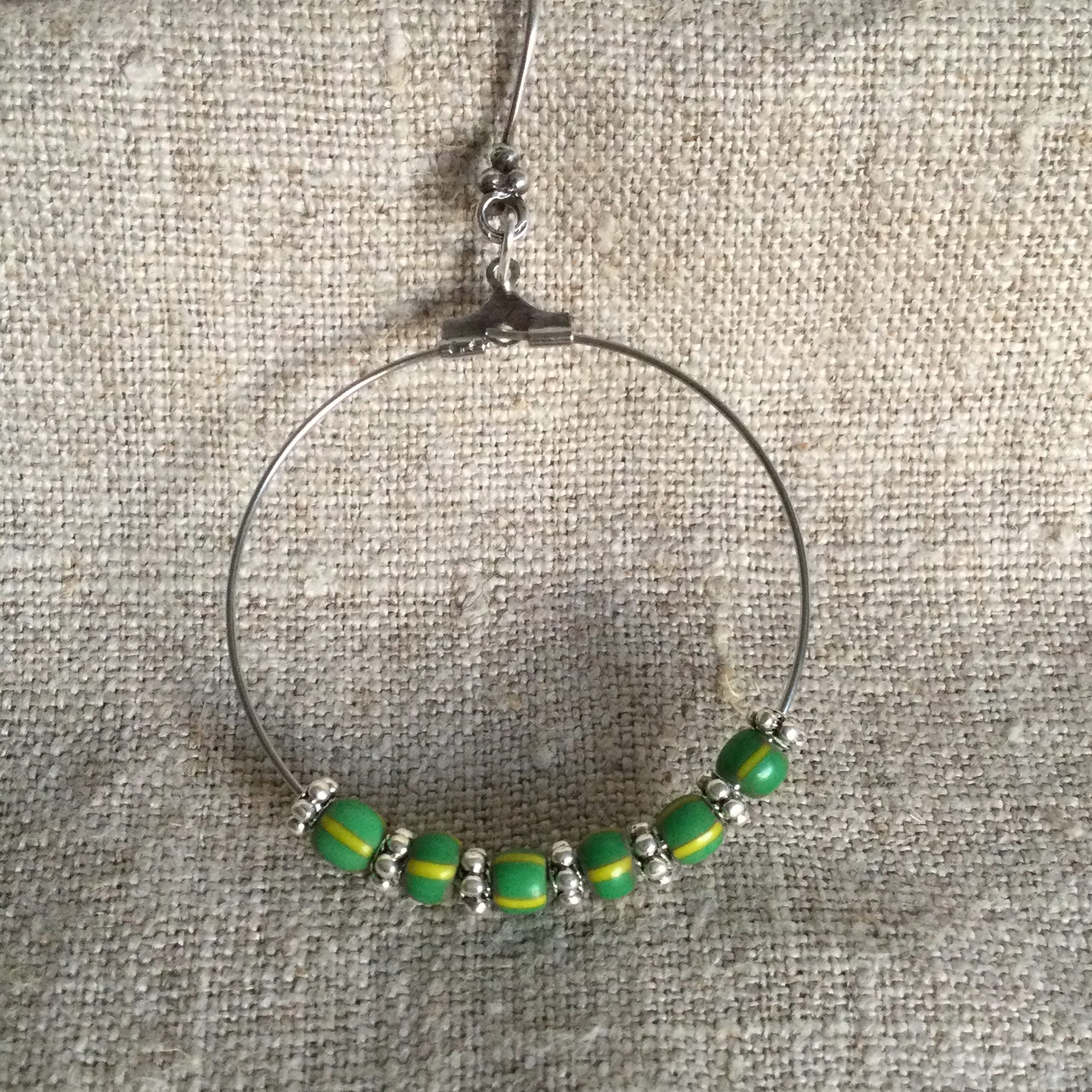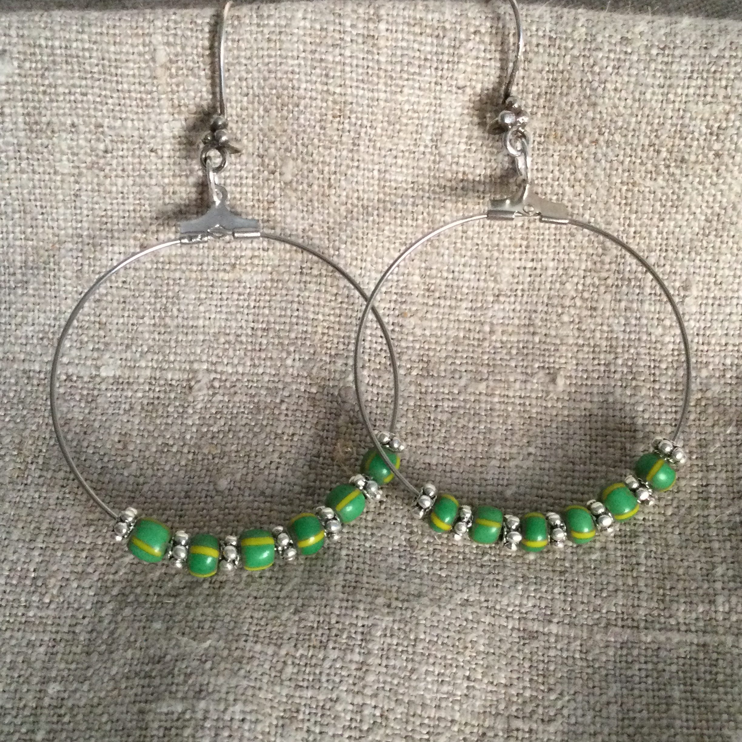 Silver hoops with handmade silver beads and Karamajan glass tribal beads from Uganda