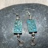 Egyptian ceramic dangle with hierglyphics with handmade silver beads and spiral dangles, on simple stainless steel hooks