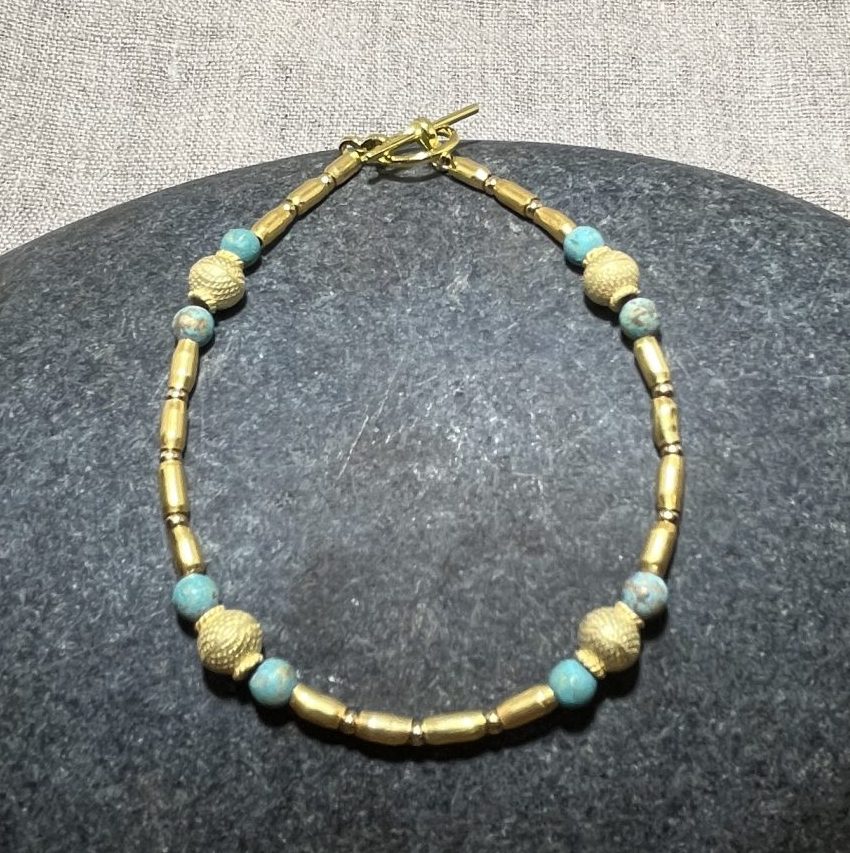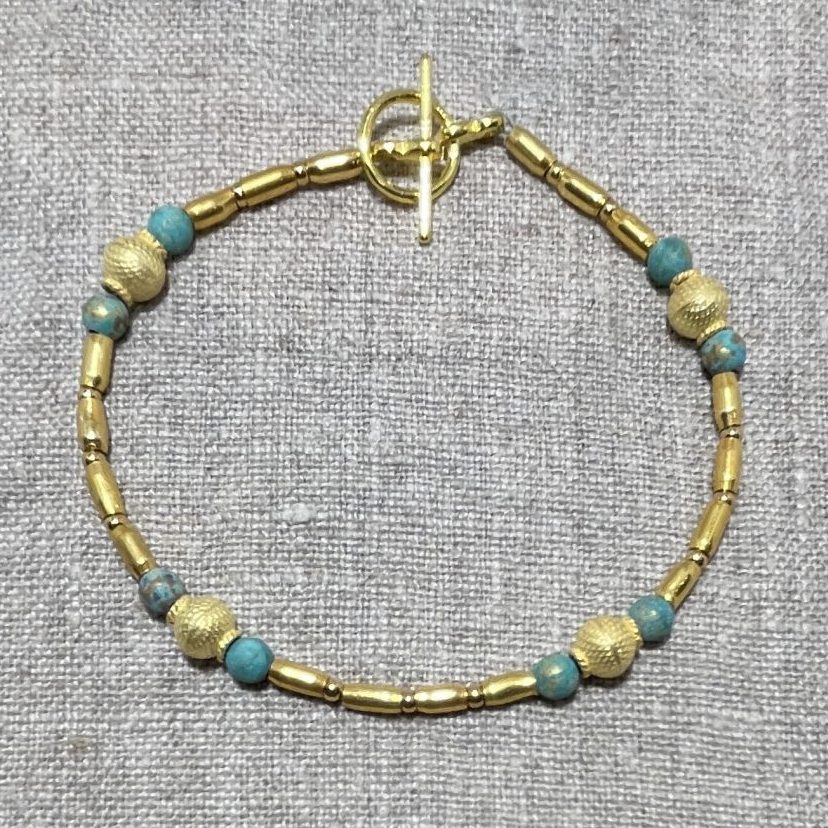 Patina brass beads and handmade gold plated silver beads